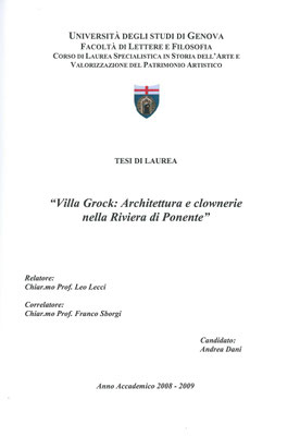 Villa Bianca, la grandiosa residenza che sorge in uno dei quartieri residenziali più prestigiosi di Imperia, rappresenta un’importante testimonianza del genio di uno dei più grandi artisti del circo e del varietà del Novecento. Questo è l’oggetto della tesi di Laurea di Andrea Dani, suddivisa in 6 capitoli. Collaborando attivamente con il progettista fin dai primi schizzi progettuali, Grock ha impresso nell’architettura e nella decorazione della villa il segno della sua straordinaria ed eclettica personalità. Questo grande complesso venne costruito nella seconda metà degli anni Venti del Novecento, e non sembra conformarsi ad uno stile specifico, ma piuttosto una personale rivisitazione dei maggiori stili artistici dell’epoca.