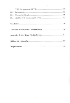 Un elaborato che si è avvalso prima di tutto dell’esperienza diretta del candidato, come membro dello staff organizzativo, alla quale si è unita la conoscenza con gli ideatori, nonché direttori, del Festival, Fabrizio Gavosto, Cecilia Di Marco, Samanta Emilia Merlo, che hanno rappresentano le fonti orali dirette, oltre ad un cospicuo materiale cartaceo, composto di locandine, rassegne stampa e dati statistici.
