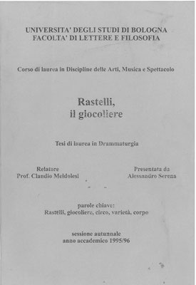 Un lavoro quindi su Rastelli, sulla giocoleria, ma anche sulla storiografia dello spettacolo, dove materie come il circo e il teatro di varietà, fino ad all’ora inesplorate, sono state esaminate in un’ottica di interdisciplinarietà, risultando per l’epoca le principali fonti di divertimento per gli spettatori di tutto il mondo occidentale.