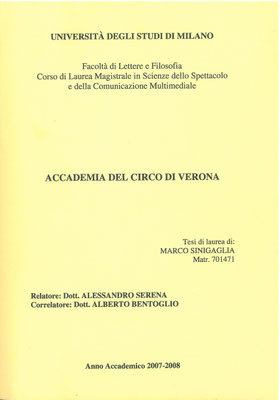 La Scuola del Circo di Mosca come archetipo, le istituzioni scolastiche tedesche, cinesi e francesi come fonti di ispirazione, mantenendosi comunque distinti per originalità e per un carattere innovativo. L’Accademia del Circo di Verona, nata nel 1988, grazie all’impegno primario di Egidio Palmiri e dei maggiori direttori di circo nazionali, è l’oggetto della tesi di Laurea di Marco Sinigaglia. Si tratta di una Fondazione patrocinata dal Ministero dei Beni e delle Attività Culturali, gestita dall’Ente Nazionale Circhi. Ospitata presso il quartiere d’inverno del Circo Americano di Enis Togni, nel veronese, per i primi due anni di vita, e, successivamente a Cesenatico per 13 anni, per ritornare nella città scaligera, dove, ancora oggi ha sede, l’Accademia di Verona è un’istituzione scolastica unica nel suo genere anche per la sua struttura convittuale in grado di ospitare gli allievi offrendo loro una possibilità più ampia per la formazione professionale e umana, che permette di coniugare l’apprendimento scolastico di base con quello delle tecniche circensi suddivise per specialità, garantendo, così, professionalità lavorativa e una maturazione intellettuale. Il percorso formativo si struttura in quattro anni, al termine dei quali viene sostenuto il saggio finale per specialità, tramite il quale si raggiunge l’ambito diploma di “artista di circo”.